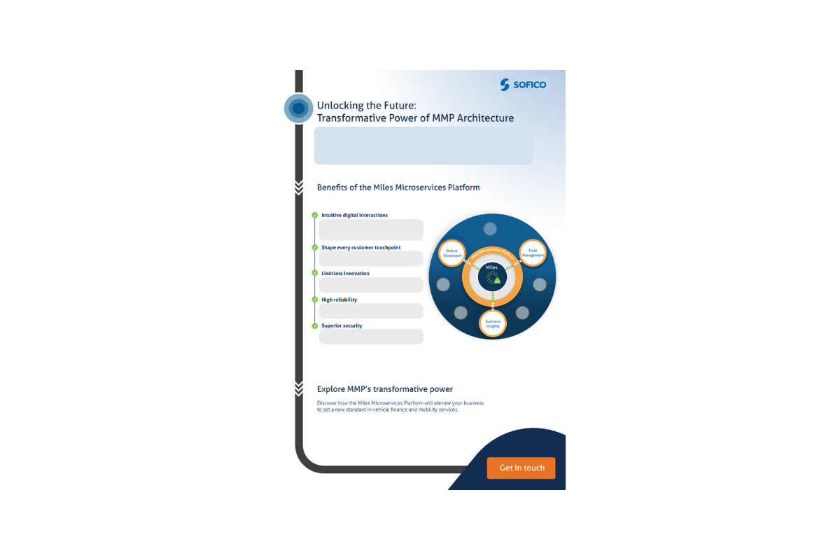 Backed by 35+ years of industry expertise, SOFICO Miles Enterprise is purpose-built to meet the evolving demands of the automotive finance and leasing sector. It supports a wide range of business lines—including finance, leasing, rental, and subscription models—across direct and indirect channels in both B2C and B2B markets.
